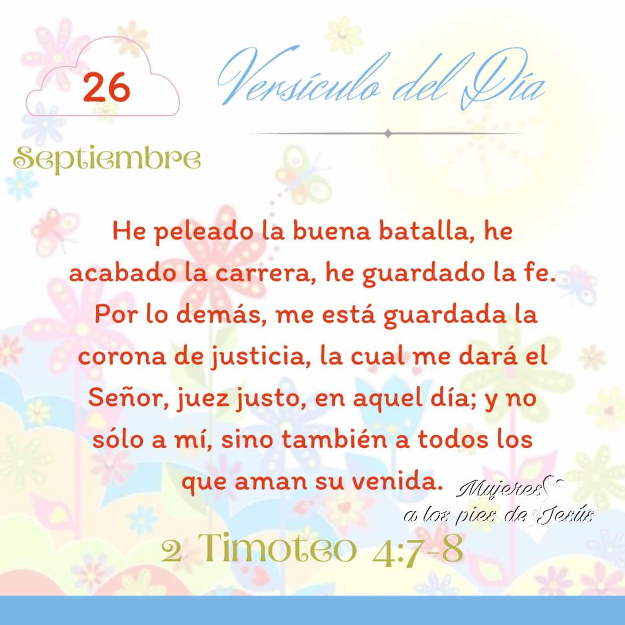 Septiembre 26 ~ 2 Timoteo 4:7-8 el septiembre 26, 2024 Obtener enlace Facebook X Pinterest Correo electrónico Otras aplicaciones