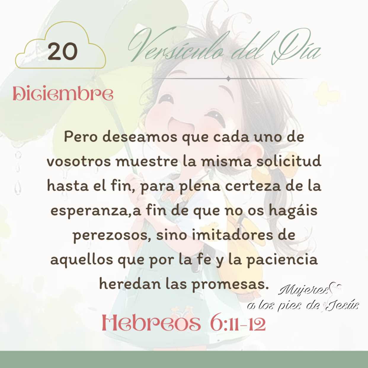 Diciembre 20 ~ Hebreos 6:11 el diciembre 20, 2024 Obtener enlace Facebook X Pinterest Correo electrónico Otras aplicaciones