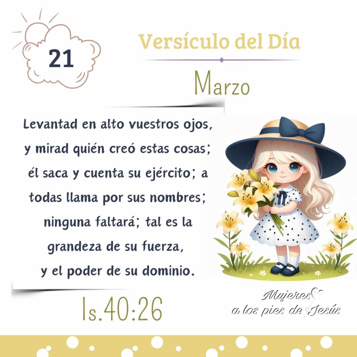 Marzo 21 ~ Isaías 40:26 el marzo 21, 2025 Obtener enlace Facebook X Pinterest Correo electrónico Otras aplicaciones